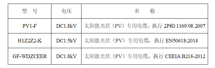 产品可以依据莱茵标准(TüV )、欧盟标准EN50618、IEC标准或电器工业协会标准CEEIAB218进行生产,并取得了国家电线电缆质量监督检验中心试验报告、PCCC认证及多项国家专利证书。